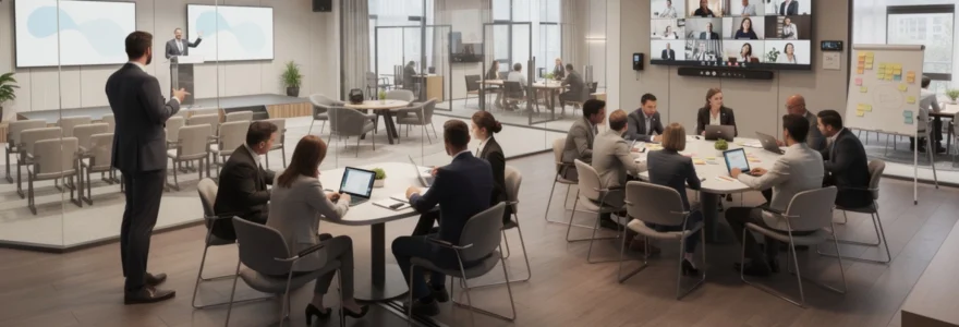 Une masterclass animée par un expert métier nécessite un dispositif différent d’une formation certifiante ou d’un atelier de co‑design. La masterclass privilégie visibilité de l’orateur et qualité audio/vidéo pour l’audience, en présentiel comme à distance. Un workshop collaboratif requiert surtout de la place pour circuler, des murs pour coller des post‑its, des tables modulables et un bon confort acoustique pour les échanges en petits groupes. Une formation certifiante, elle, impose souvent des contraintes réglementaires : contrôle d’identité, taux de présence, dispositif de suivi. Adapter ces formats à vos configurations internes consiste à jouer sur la modularité : mêmes salles, mais scénarios d’occupation et de mobilier différents selon l’objectif. Une salle de créativité peut ainsi accueillir le matin une session de formation et l’après‑midi un atelier de prototypage orienté design thinking.
